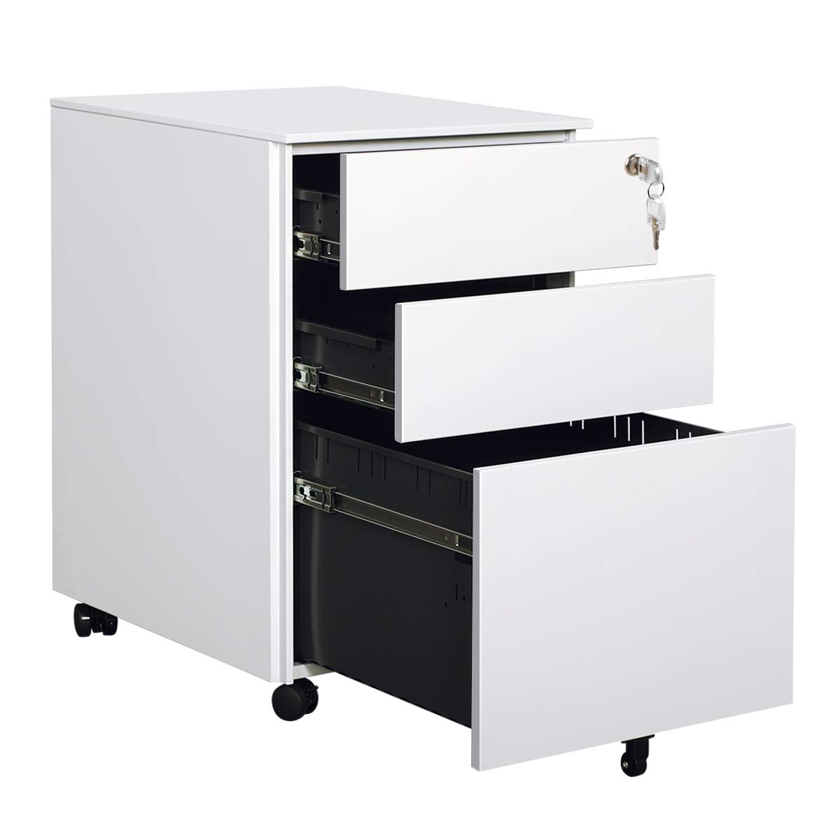 Equipped with 2 keys, it locks 3 drawers simultaneously so all your documents are safely stored within the cabinet. Its compact design allows this drawer to fit under most office desks. Devaise 3 drawer mobile file cabinet with lock, metal filing cabinet legal/letter size, fully assembled except wheels, white. View all product details & specifications. 3 drawer file cabinet on wheels, metal filing cabinet with lock, locking file cabinets under desk with mobile pedestal for legal/letter/a4 size, fully assembled, pink 4.5 out of 5 stars 161 $129.99 $ 129. 35.4 w x 17.7 d x 40.5 h. Pencil drawer ideal for storing office supplies. Sold and shipped by harper & park. Bhbl vertical 3 drawer file cabinet for home office with wheels,mobile file cabinet metal filing cabinet with lock for letter, legal, a4 file. Each file drawer is equipped with 2 removable dividers for letter, a4, legal size hanging file folders. If you have any questions about your purchase or. It is very nice filling cabinet. Aurora modern soho design 3 drawer metal mobile file cabinet lock key $136.99 new 3 drawer vertical file cabinet home office organizer 18 deep with lock in red
